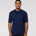 A4 ADT SOFTEK RINGR T 65% Recycled Poly, 35% Natural Cotton. 4.1 ounces. Moisture wicking to keep athletes cool. Stain and odor release for easy care. Earth friendly. Contrast ribbed collar and cuffs. Easy tear away label for rebranding.